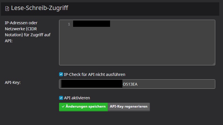 Den API-Key kann man im Mailcow Config-Menü ganz einfach generieren.